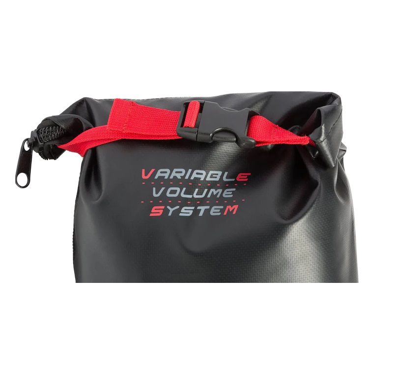 Túi có dây đeo vai có thể điều chỉnh và tay cầm được gia cố. Dây khóa kéo YKK dài 133 cm. Bên trong có một túi nhỏ với khóa dán bằng vải. Trên đỉnh, bạn có thể cuộn và đóng chặt nhờ vào khóa điều chỉnh được.